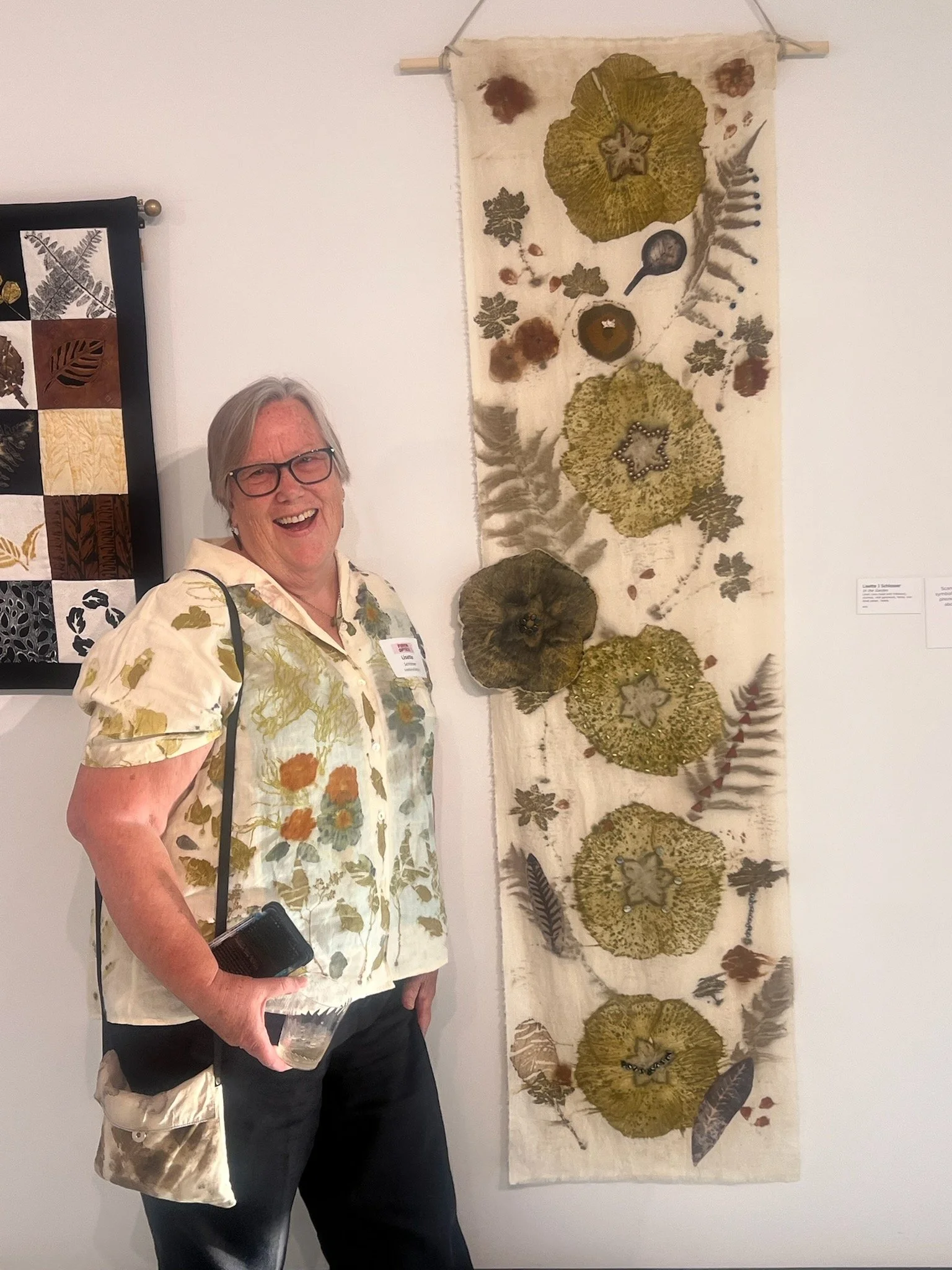 I’ve explored mosaic, wet-felting, needle felting, visible stitching, saori weaving, printmaking, beading and eco-dyeing. I especially love the textures of fiber art.